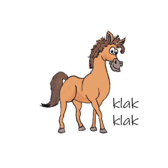 - Doe een paardje na! Het geluid van de hoeven klinkt als het klakken van je tong.
